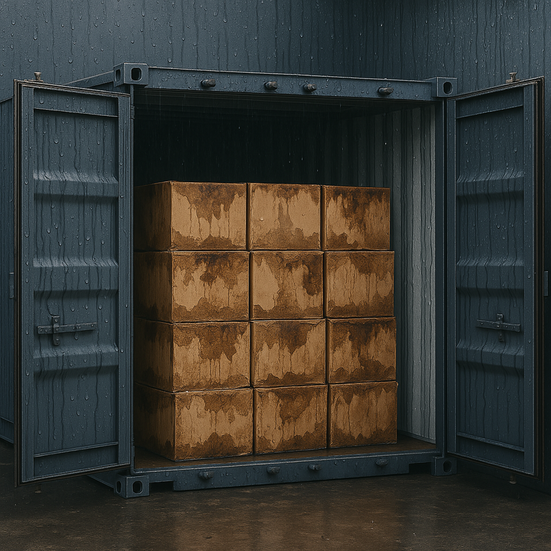 The cargo inside the container may also release moisture. For example, goods that have been stored at a higher temperature before shipping can cool down inside the container, leading to the condensation of moisture.